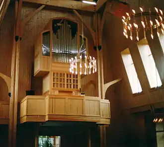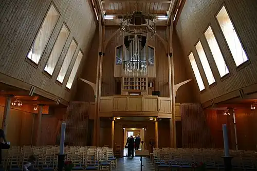 Seegård Church (Norwegian: Seegård kirke) is a parish church of the Church of Norway in Gjøvik Municipality in Innlandet county, Norway. It is located in the village of Seegård. It is one of the churches for the Snertingdal parish which is part of the Toten prosti (deanery) in the Diocese of Hamar. The brown, wooden church was built in a rectangular design in 1997 using plans drawn up by the architect Arne Thorsrud. The church seats about 250 people.[1][2]