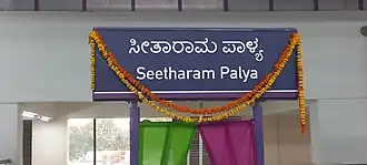 Seetharamapalya is an elevated metro station on the East-West corridor of the Purple Line of Namma Metro in Bengaluru, India. This station is located near IFB Automotive Pvt. Ltd., Fairfield by Marriott Hotel, IFB Industries and many more.[1][2][3]