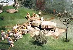 It lasted from around 3100 to 2000 BCE and is most famous for its gallery grave megalithic tombs, which incorporate a port-hole slab separating the entrance from the main burial chamber. In the chalk valley of the River Marne, rock-cut tombs (hypogea) were dug to a similar design. Some have examples of megalithic art with images of axes, breasts, and necklaces carved on their walls.[1]