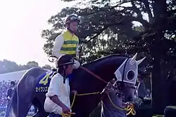 He was then entered in to the Yayoi Sho, which was the first graded race for the horse. He was the third most favored to win behind King Halo and Special Week, who would be considered two of the "big three" of their generation alongside Seiun Sky.[2][3] Seiun Sky became the front runner in that race and kept the lead for most of the way, but was caught up by Special Week at the final slope, ultimately finishing in second place.[3] Following the horse's defeat, the horse's main jockey was switched from Tokuyoshi to Norihiro Yokoyama.[3]