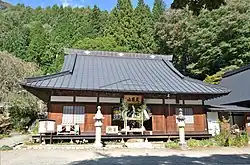 - Koryu (building) of Seiunji Temple - Designated on June 22, 1995, According to the "Reconstruction of the Hall", the temple was rebuilt in the first year of Bunroku (1592). The treasury was dismantled and reconstructed between 1996 and 2001, restoring it to its former glory. Facing the south on the east side of the main hall, it is a single-story gabled roof with a copper plate roof. The construction of the kōri is dated to the first year of the Bunroku era (1688-1704), according to the "reconstruction schedule". It is valuable as the origin of the Koshu Minka.