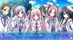 Another heroine includes Minori Tsukidate (月舘 美紀, Tsukidate Minori; voiced by Iroha Haruno), a beautiful and intelligent girl, appearing to be very ladylike.[5] However, she is fun-loving outside of school. Renri makes other friends during his stay in Kaginomori, such as Aira Shiratori (白取 愛良, Shiratori Aira; voiced by Haruru Aikaze), an extremely quiet girl who only seems to talk to him.[5] Much of the time, Aira does not change her facial expression. Renri's senpai, Haruka Akane (朱音 遥, Akane Haruka; voiced by Ui), is a genius with dreadful sleeping habits, and tends to speak slowly.[5] She has a pair of dog ears, and a tail.