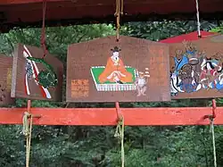 A contemporary ema (votive tablet) with a depiction of Sekizan Myōjin. | |