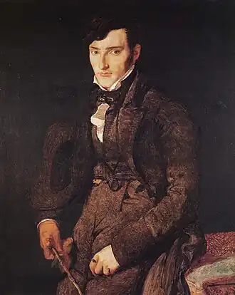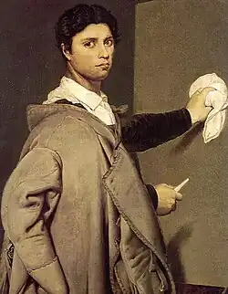 Self-Portrait Aged 24 is an oil-on-canvas painting by the French Artist Jean-Auguste-Dominique Ingres, originally produced in 1804. It is Ingres's earliest self-portrait. Ingres later reworked the painting sometime after 1850. In its present form, the painting depicts Ingres standing in front of an easel with a canvas, holding chalk in his right hand, with an oversized brown cloak resting on his upper back. The painting is now in the Musée Condé, Chantilly in France.[1]