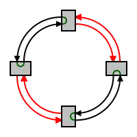 The system consists of a ring of bidirectional links between a set of stations, typically using optical fiber communications. In normal use, traffic is dispatched in the direction of the shortest path towards its destination. In the event of the loss of a link, or of an entire station, the two nearest surviving stations "loop back" their ends of the ring. In this way, traffic can still travel to all surviving parts of the ring, even if it has to travel "the long way round".