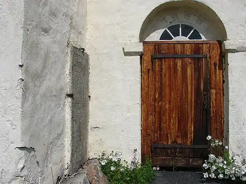 The earliest existing historical records of the church date back to the year 1319, but that is not when the church was built. The stone church was built around the year 1180, although construction likely started earlier, possibly as early as 1150. The church has a rectangular nave and chancel with a small tower on the roof of the nave. The chancel has a semi-circular apse on the east end. Around 1630, the church was struck by lightning and it caught fire. Afterwards, the church was rebuilt after the extensive damage from the fire. A new wooden church porch was built on the west end after the fire.[4][5]