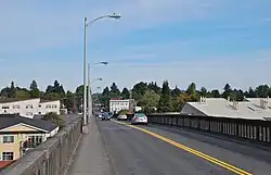 The Sellwood Bridge is a deck arch bridge that spans the Willamette River in Portland, Oregon, in the United States. The current bridge opened in 2016[2] and replaced a 1925 span that had carried the same name. The original bridge was Portland's first fixed-span bridge and, being the only river crossing for miles in each direction, the busiest two-lane bridge in Oregon.[1]