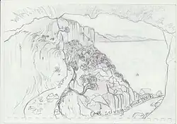 Marcello Cominetti's drawing of the "Grotta del Fico" (Fico's Cave) from the sea -