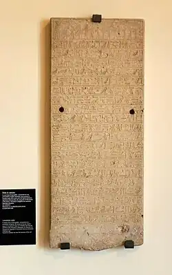 Sematawytefnakht entered in Persian military service under Darius III and was called to fight in the Battle of Issus (333 BCE) against Alexander's army.[2][4] In his stela, he claimed that Heryshaf, the local deity of his hometown, appeared to him in a dream and warned him of the danger he would risk by fighting the battle. Strong with this premonition and frightened by Alexander's seemingly unstoppable advance, he fled from the battlefield and returned to Herakleopolis Magna in order to resume his religious offices, thus switching his allegiance once more when, shortly after, Alexander conquered Egypt (332 BCE).[1][2]