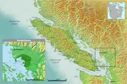 The Semiahmoo (/ˌsɛmiˈɑːmoʊ/ SEM-ee-AH-moh, /ˌsɛmiˈɑːmuː/ SEM-ee-AH-moo; Semiahmoo: SEMYOME) are a Coast Salish indigenous people whose homeland is in the Lower Mainland region of southwestern British Columbia, Canada. According to Chief James “Jimmy” Charles (1867–1952), chief of the Semiahmoo from 1909 to 1952, the word Semiahmoo means “half-moon,” and describes the shape of Semiahmoo Bay.[1]