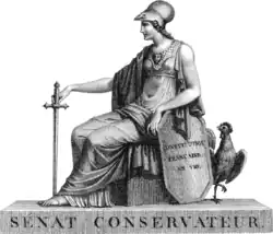 The Sénat conservateur (French pronunciation: [sena kɔ̃sɛʁvatœʁ], "Conservative Senate") was an advisory body established in France during the Consulate following the French Revolution. It was established in 1799 under the Constitution of the Year VIII following the Napoleon Bonaparte-led Coup of 18 Brumaire. It lasted until 1814 when Napoleon Bonaparte was overthrown and the Bourbon monarchy was restored. The Sénat was a key element in Napoleon's regime.