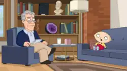 ![]() Stewie (right) speaking to his child psychologist Dr. Cecil Pritchfield (left) | |