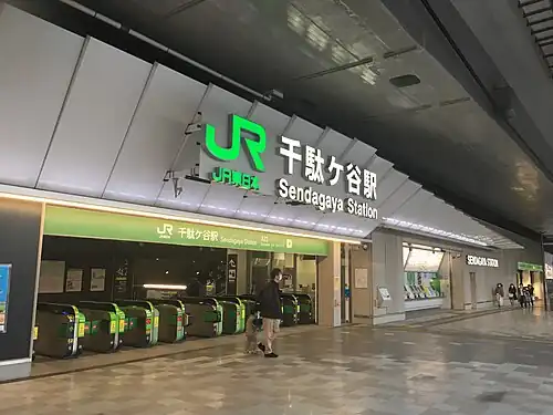 - ^ 各駅情報(千駄ケ谷駅) [Station Information: Sendagaya Station] (in Japanese). Japan: East Japan Railway Company. Retrieved 27 October 2012.