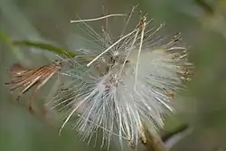 Its seeds disperse by wind because its single-seeded fruit contains pappus, the function of which facilitates the dispersal of seeds.[11] Its seeds can lie dormant on the ground for a couple of years, germinating quickly after summer heat, fire or other disturbances.[12]