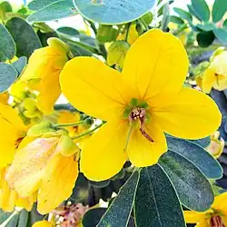 Senna surattensis, also called glossy shower, scrambled egg tree, glossy shower, golden Senna, glaucous Cassia, sunshine tree and bushy Cassia, is a plant species of the legume family (Fabaceae) in the subfamily Caesalpinioideae that is native to southeast Asia, and possibly northern and eastern Australia.[5][4][6]