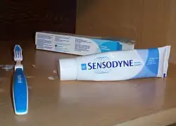 Sensodyne is a brand name of toothpaste and mouthwash targeted at people with sensitive teeth.[1] Sensodyne is owned by Haleon and is marketed under the name Shumitect in Japan.[2]