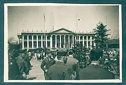 Soon after the 1945 liberation of Korea, the buildings were used for a variety of purposes.[22] The art museum was renamed to the Deoksugung Art Museum and hosted an exhibit to honor the arrival of the United States Army Military Government in Korea.[40] In March 1946, the U.S. designated Seokjojeon as the offices of the United States–Soviet Union Joint Commission. They held a major meeting in the building on the issue of Korean reunification on March 20, 1946.[40] The returning Korean Provisional Government used the building for a number of its meetings.[41] The joint commission was dissolved in October 1947.[31]