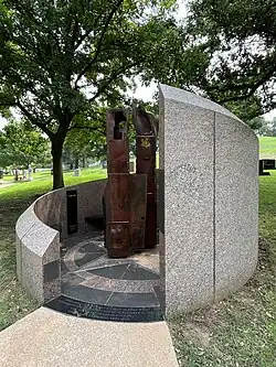 The September 11, 2001 Monument is installed at the Texas State Cemetery in Austin, Texas.[1][2] Designed by O'Connell, Robertson and Associates of Austin, the memorial commemorates victims of the September 11 attacks and Operation Enduring Freedom. It was commissioned by Governor Rick Perry in 2002 and unveiled in 2003. The monument includes two steel columns from Ground Zero.[3][4]