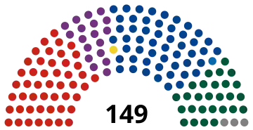 All 149 seats in the Folketing 75 seats needed for a majority |