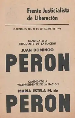 - ^ "Peron Again Elected President— 18 Years After Being Ousted", Los Angeles Times, September 24, 1973, p. I-1