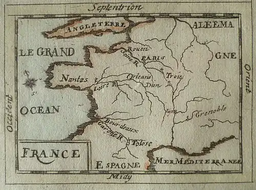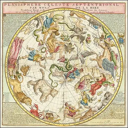 The term septentrional is found on maps, mostly those made before 1700. Early maps of North America often refer to the northern- and northwesternmost unexplored areas of the continent as at the "Septentrional" and as "America Septentrionalis", sometimes with slightly varying spellings.[note 1] Sometimes abbreviated to "Sep.", it was used in historical astronomy to indicate the northern direction on the celestial globe, together with Meridional ("Mer.") for southern, Oriental ("Ori.") for eastern and Occidental ("Occ.") for western.[3]