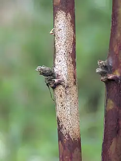Septocyta ruborum is a species of fungus in the Ascomycota.[1] Its taxonomic relationship to other taxa in the Ascomycota is unknown, and it has not been assigned with certainty to any order or family (incertae sedis). It is a plant pathogen and grows on Rubus laciniatus, R. nessensis, R. procerus and wild blackberry (R. fruticosus); it causes purple blotch or stem spot disease, also known as dieback of blackberries.