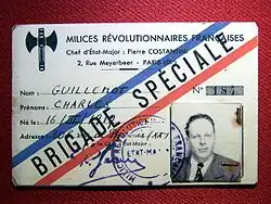Ravanel's false ID for the special brigade of the French Revolutionary Militias, under the pseudonym Charles Guillemot | |