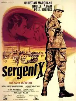 Sergeant X (French: Sergent X) is a 1960 French drama film directed by Bernard Borderie and starring Noëlle Adam, Christian Marquand and Paul Guers. It is a remake of the 1932 film of the same title. It was made in the style of a traditional Foreign Legion film with little acknowledgement of the ongoing Algerian War.[1]