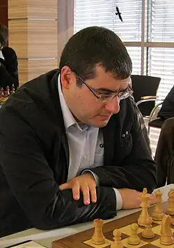 He won international tournaments in Sarajevo, Bosna (2002 and 2007, both outright), at that time a strong closed GM tournament;[11] 2007 Czech Coal Carlsbad Jubilee tournament in Karlovy Vary[12] (joint with Ruslan Ponomariov); Mikhail Chigorin Memorial in Saint Petersburg in 2007; and the Wijk aan Zee Corus B tournament in 2008, a full point ahead of Nigel Short and Etienne Bacrot.[13] At the 2008 European Individual Chess Championship, held in Plovdiv, Movsesian finished in a tie for 2nd–10th places. He won the playoffs to take the silver medal.[14] In the 2013 edition of the same event he tied for 1st–8th with Alexander Moiseenko, Evgeny Romanov, Alexander Beliavsky, Constantin Lupulescu, Francisco Vallejo Pons, Hrant Melkumyan, Ian Nepomniachtchi, Alexey Dreev and Evgeny Alekseev.[15] Movsesian was part of the Armenian team that took the bronze medal in the 2015 World Team Championship in Tsaghkadzor.[16]
