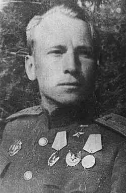 During World War II he participated in air combats in Kuban, shot down aircraft in the Kursk Salient, and participated in the battle in Stalingrad.[2] By the end of World War II he had been promoted to Major. After the war ended, he worked in the Saratov aeroclub as a flying instructor. Yuri Gagarin was one of his students.[1] He later became the flight commander of Gagarin.[2]