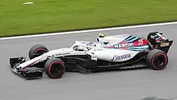 Sirotkin qualified 19th for his first Grand Prix in Australia, but his first F1 race was ended shortly after a sandwich bag got into his Williams car brake system.[38] For the next two races (Bahrain and China) he out-qualified Stroll, but finished just behind him in fifteenth place.[39][40] He made it into the second qualifying segment for the first time at Baku, qualifying 12th, but his race was ended on the first lap after he was squeezed between Nico Hülkenberg and Fernando Alonso's cars and his car suffered front-left suspension damage.[41] Prior to the accident he also collided with Sergio Pérez which led to the three-place grid penalty on the start of the Spanish Grand Prix.[42] In Spain Sirotkin qualified ahead of Stroll, but lost his place on the grid to him after the penalty was applied. He had a seat problem during the race and was the last driver to cross the finish line.[43] He again out-qualified Stroll at Monaco. Sirotkin passed Stoffel Vandoorne on the first lap but his race was ruined after the mechanics were not able to fit the tyres in time for the 3-minute signal prior start of the race. He received a 10-second stop-and-go penalty for this, finishing the race second last, ahead of Stroll.[44]