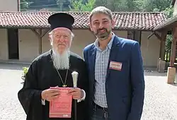 He has organized more than 20 international scientific conferences on the spiritual and cultural heritage of Mount Athos and the history of the Church in Ukraine (including with the support of the École Pratique des Hautes Études (Paris, France), the Keston Institute in Oxford (UK), Columbia University (USA), the World Council of Churches (Geneva, Switzerland) and other international organizations). For a long time, he was engaged in research activities abroad (Great Britain, France, Greece, Germany, Italy), held personal lectures, exhibitions and presentations on the Ukrainian heritage of Mount Athos in more than ten European countries (Athens, Paris, London, Oxford, Cambridge, Rome, Venice, Milan, Naples, Strasbourg, Geneva, Brussels, Hamburg, Warsaw, Prague, Jassy and others).[11] In particular, he has lectured at the World Council of Churches in Geneva,[22][23] Webster University in Athens[12] and other international academic and religious institutions. In 2022, he organized several scientific and educational events at the Sorbonne University in Paris to promote Ukrainian cultural heritage.[24][25][26]