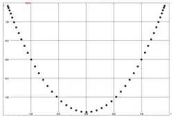 Kendall (1971) applied multidimensional scaling to the cemetery data of Münsingen. The resulting scatterplot showed the form of a horse-shoe where the graves were arranged on the curve according to their chronological order. Similarly, a mapping of the component scores for the first two axes of the correspondence analysis result will display a parabola if the design styles considered are controlled by one factor only (like chronology). This is called the arch effect by Hill and Gauch (1980).[8] Both Kendall and Jensen & Høilund Nielsen (1997) created artificial data sets to show that the parabola results in ideal circumstances. Therefore, it is recommended inspecting the scatterplot of the first two axes of correspondence analysis to find out if other factors play a role as well (see Examples 2 and 3).