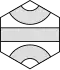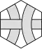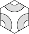 For example, for 003 above, proceeding anti-clockwise from the lower right edge, the path/pair notation is 12-34-56. A single orthogonal rotation of the shape will add one (if anti-clockwise) or subtract one (if clockwise) to each number, modulo 6. In this way, the linked paths with an orthogonal rotation (60°) anti-clockwise would change to 23-45-67, or rewriting using modulo 6, 23-45-61, demonstrating that different sides are linked with a single orthogonal rotation. The specific order within a pair and the order in which the pairs are written does not affect the configuration. For example, 23-45-61 is equivalent to 23-45-16 and 16-23-45. Thus with a second orthogonal rotation, which results in 34-56-12, it is simple to demonstrate the second orthogonal rotation is equivalent to 12-34-56, the original orientation.