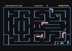Serpentine is a maze video game written by David Snider for the Apple II and published by Broderbund in 1982.[2][3] Serpentine's gameplay and visuals are similar to Konami's 1981 arcade game, Jungler, released the previous year. It was ported to the Commodore 64 and Atari 8-bit computers. A VIC-20 version was licensed to Creative Software.[1]