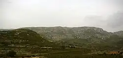 The northern slopes of the Serra del Turmell are covered with Mediterranean forest of holm oak and pine, while the southern slopes are almost denuded of vegetation with the grey limestone rocks exposed among scattered clumps of shrub.[4] There are large prey birds such as the griffon vulture, as well as wild animals such as the Spanish ibex, roe deer and wild boar.