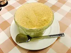 Serradura (Portuguese pronunciation: [sɐʁɐˈduɾɐ]), also known as sawdust pudding or Macau pudding, is a well-known Portuguese dessert, popular in both Portugal and Macau (a former Portuguese colony in China),[1] as well as Goa (a former Portuguese colony in India), with a layered appearance alternating between whipped cream and crumbled Marie biscuit.