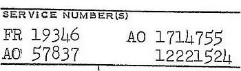 - ^ National Personnel Records Center, Military Operations Branch, "Service number index and registry of retired, deceased, and discharged military personnel" (2007)