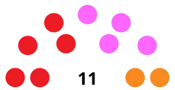 The Setúbal City Council is made up of 11 councillors,[3] representing, currently, three different political forces. The first candidate on the list with the most votes in a municipal election or, in the event of a vacancy, the next candidate on the list, takes office as President of the Municipal Chamber.