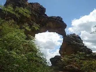 The Sete Cidades National Park is divided between the municipalities of Brasileira (26.21%) and Piracuruca (73.77%) in the state of Piauí. It has an area of 7,700 hectares (19,000 acres).[1] The park is surrounded by the 1,592,550 hectares (3,935,300 acres) Serra da Ibiapaba Environmental Protection Area, created in 1996.[2]