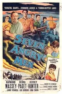Seven Angry Men is a 1955 American Western film directed by Charles Marquis Warren and starring Raymond Massey, Debra Paget and Jeffrey Hunter.[1]