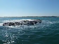 Immediately before the 2004 tsunami struck the Indian Ocean, including the Bay of Bengal, the ocean water off Mahabalipuram's coast pulled back approximately 500 meters. Tourists and residents who witnessed this event from the beach recalled seeing a long, straight row of large rocks emerge from the water. As the tsunami rushed to shore, these stones were covered again by water. However, centuries' worth of sediment that had covered them was gone. The tsunami also made some immediate, lasting changes to the coastline, which left a few previously covered statues and small structures uncovered on the shore.[4]