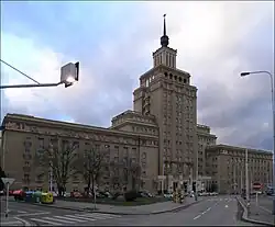 Another design by Lev Rudnev, with Polish Renaissance Revival detailing. Built in 1952–1955 (topped out October 1953). Construction plans were agreed upon on April 5, 1952, and sealed during Vyacheslav Molotov's visit in Warsaw on July 3 of the same year (after the opening ceremony on May 1). The Soviets planned it as a university, but the Polish side insisted on its current administrative function. A workforce of around 7,000 was nearly evenly split between Poles and imported Soviet laborers; 16 were presumably killed during the work. The building remained the tallest in Poland until the Varso Tower, a modern glass skyscraper, was constructed in Warsaw in 2021.