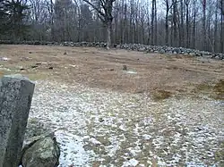 Today, there are no full standing headstones, due to vandalism that took place in the 1970s and again in 2010, and also as a result of weathering. The only standing headstone was that of Elisabeth Palmiter, and that stone remained in the cemetery until 2010. Sometime between 7:30am on July 20 and 11am on July 21, some individuals stole the 200-pound headstone of Elisabeth Palmiter.[2] This was a roughly 200 pound grave marker that was re-dedicated to the site in the 1970s, following the removal of all vandalized pieces of the original stones. The cemetery is now private property (owned by the New Britain Public Works) and the Burlington police and local residents usually patrol the area at night to guard against further vandalism. Visiting the site during the day for the purpose of historical research is permitted.