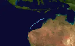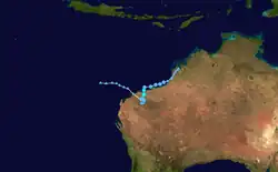| Victoria | 7–12 April | Category 3 severe tropical cyclone | 140 km/h (85 mph) | 971 hPa (28.67 inHg) | Western Australia | None | None | None | |