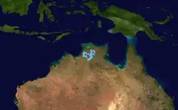 On 12 January, a weak tropical low formed over the Arafura Sea.[25] The system was last noted the following day, having a pressure no lower than 1004 mb (hPa; 29.65 inHg).[26] The United States Navy continued monitoring the system until it was last noted on 16 January.[27]
