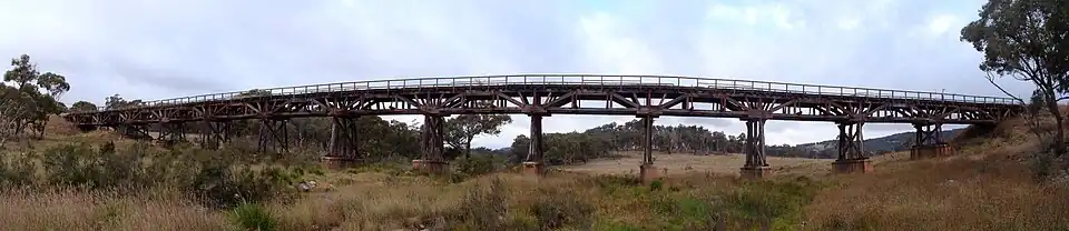 Only two other such timber viaducts were built in this period, the Ingalara Creek railway bridge and the Bredbo River railway bridge on the Bombala railway line.[1]