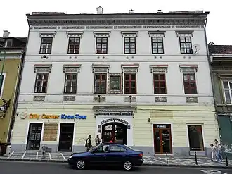 Sextil's son Radu (1906–1978) was a noted surgeon; his wife Maria lived to 1999.[147] Lia Pușcariu Manoilescu continued to work as a linguist until her death in 1965, as did her daughter by Manoilescu,[148] Magdalena Vulpe (1936–2003).[16][146] Vulpe, drawing on manuscripts left in the family vault at Bran, published four volumes of his memoirs: Călare pe două veacuri (1968), Brașovul de altădată (1977), Memorii (1978) and Sextil Pușcariu. Spița unui neam din Ardeal (1998).[149] The Museum of the Romanian Language ultimately evolved into the Romanian Academy's Sextil Pușcariu Institute of Linguistics and Literary History, which has borne his name since 1990.[79] In 2008, some 19 years after the anti-communist uprising, author Gabriel Vasiliu reestablished the Romanian Orthodox Fraternity.[150] There are streets named after Pușcariu in Bran, Cluj-Napoca, Oradea, and Timișoara, as well as a high school in Bran, and his former home in the village center is preserved as a museum.