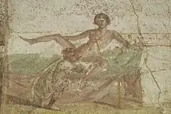 Image from ancient mural at Pompeii of couple performing oral sex