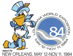 Seymore D'Fair (alternatively Seymour D'Fair, and sometimes called Seymore de Faire or Seymour d'Fair) is a cartoon animal and costumed character who was the official mascot of the 1984 Louisiana World Exposition. Seymore is an anthropomorphic white pelican who typically wears a blue tuxedo jacket, top hat, spats, and white gloves. His name is derived from the New Orleans phrase "see more of the fair". He was the first-ever character mascot in the history of World Expositions.[1]